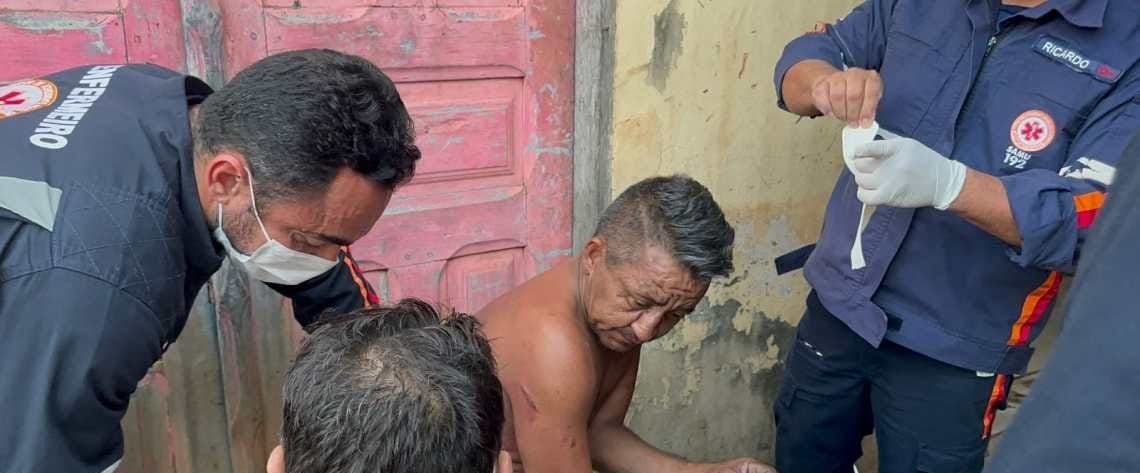 Homem quase morrer após ser golpeado por facas e terçados