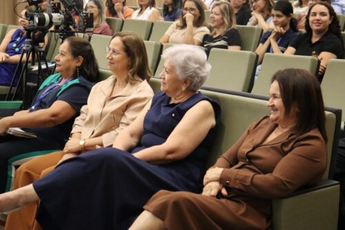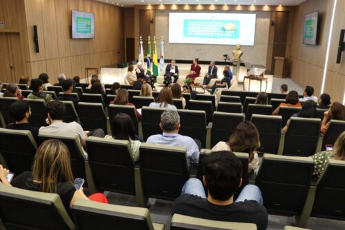 A roda de conversa contou com a participação atenta da presidente Dulce Benício, da conselheira Naluh Gouveia, dos procuradores Sérgio Cunha, Anna Helena e João Izidro, além de dezenas de servidores e servidoras que lotaram o Plenário Hélio Saraiva.