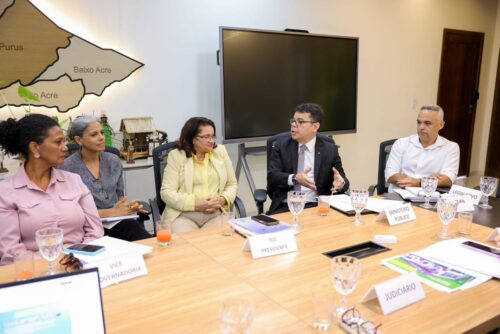 Participaram da reunião a diretora da Escola de Contas do TCE-AC, conselheira Naluh Gouveia, o presidente da Assembleia Legislativa do Acre (Aleac), deputado Nicolau Júnior, o procurador-geral de Justiça Oswaldo D’Albuquerque, a juíza de Direito titular da Vara de Apoio à Jurisdição (VAJUR), Evelin Campos Cerqueira Bueno, além da coordenadora do Centro de Atendimento à Vítima (CAV), promotora de Justiça Bianca Bernardes de Moraes.